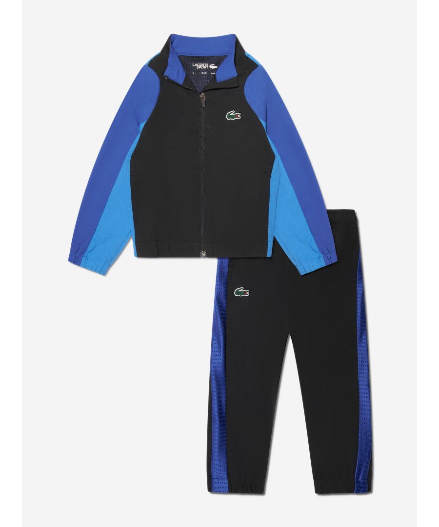 Boys’ Lacoste Tennis Colourblock Jogger Set- High neck - Stretchy anti-perspirant fabric - Jacket with mesh panel on back - Crocodile transfer - Diamond taffeta made from recycled polyester