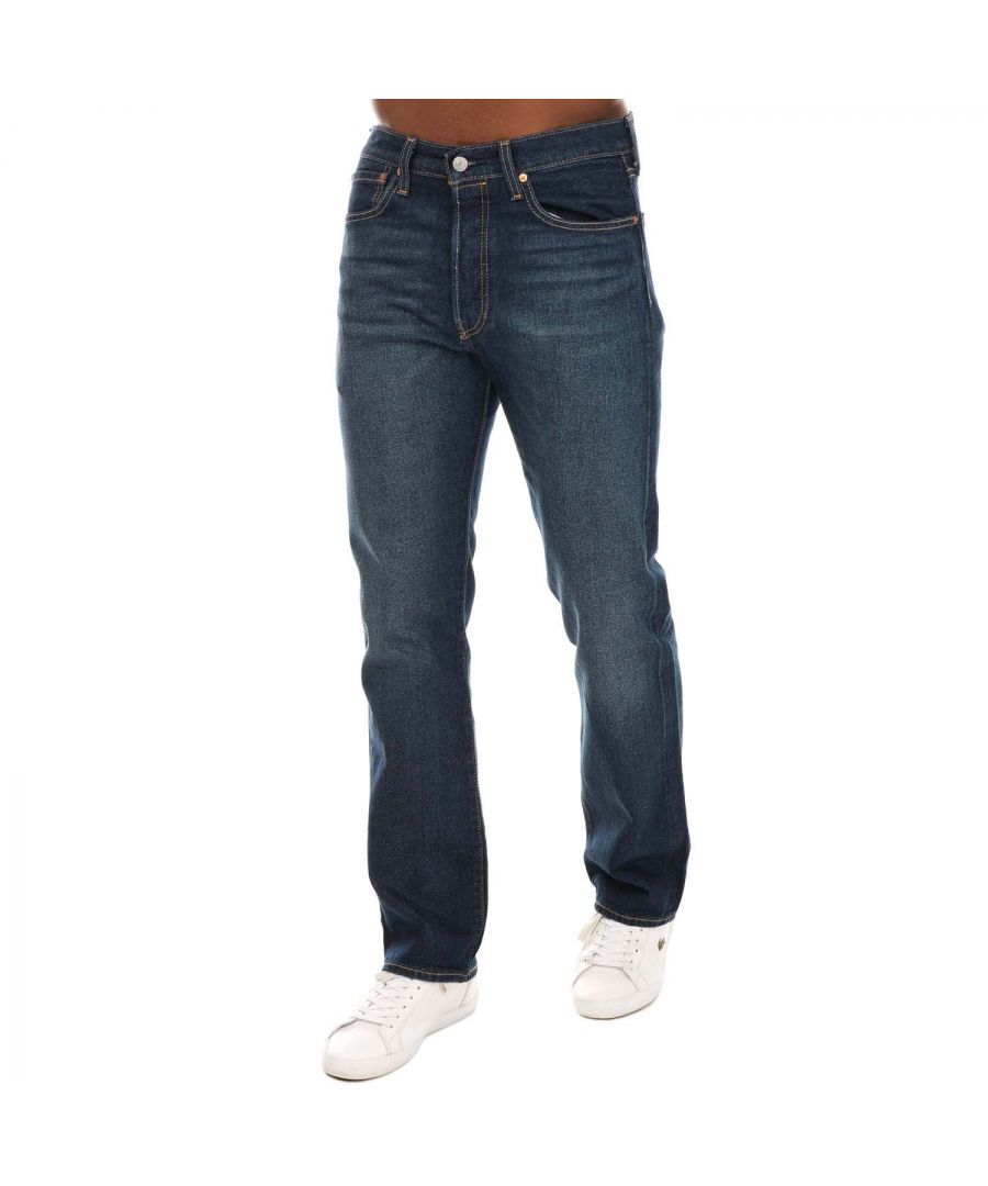 Mens Levis 501 Original Fresh Clean Jeans in denim.- 5-pocket construction. - Button fastening.- Branded leather patch at rear waist.- Stretch.- Straight leg.- Regular fit through the seat and thigh.- 99% Cotton 1% Elastane.- Ref: 005013139