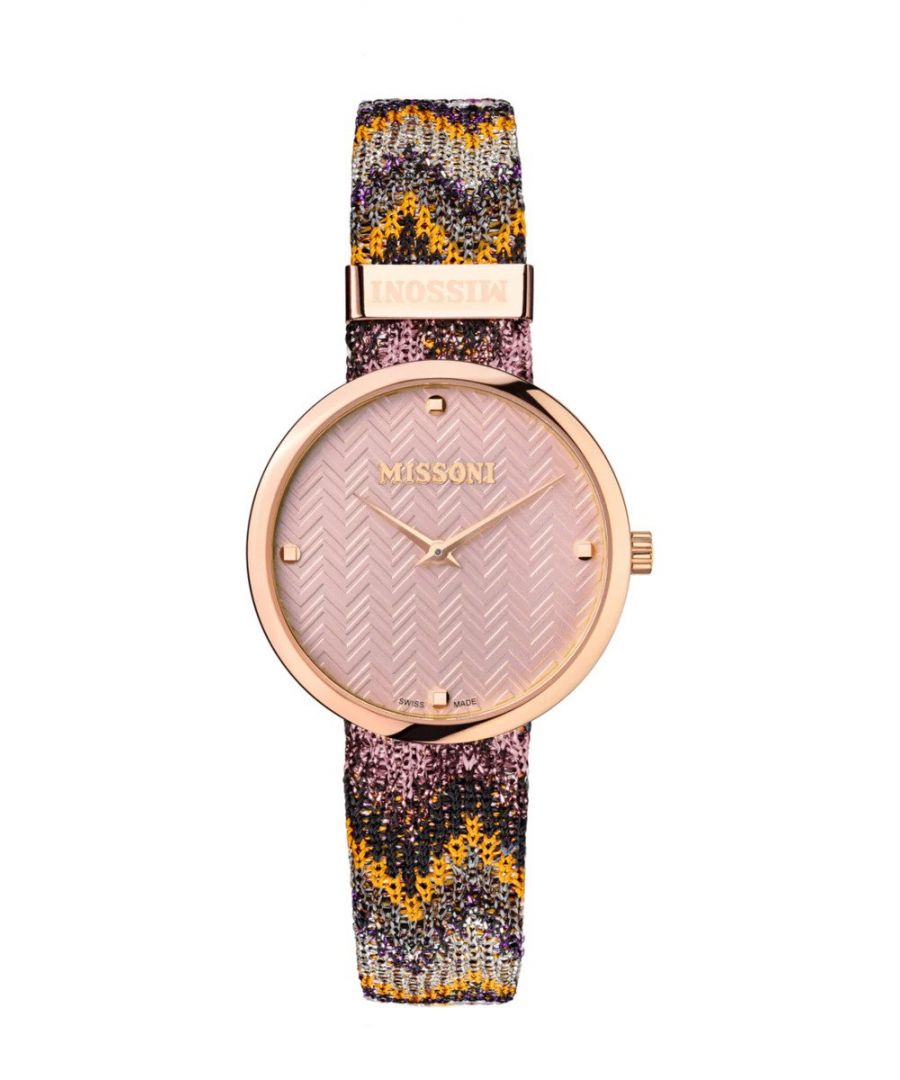 Dit Missoni Dames horloge beschikt over een Quartz binnenwerk. De kast (34 mm mm) is vervaardigd uit RVS (Rosékleurig) en heeft een Saffierglas. De band is Multi Leer. Dit horloge uit de Missoni M1 reeks is een mooi en tijdloos geschenk. Verras jezelf of iemand anders met dit cadeau. Bovendien geniet u hierbij van 2 jaar garantie tegen alle fabricagefouten.