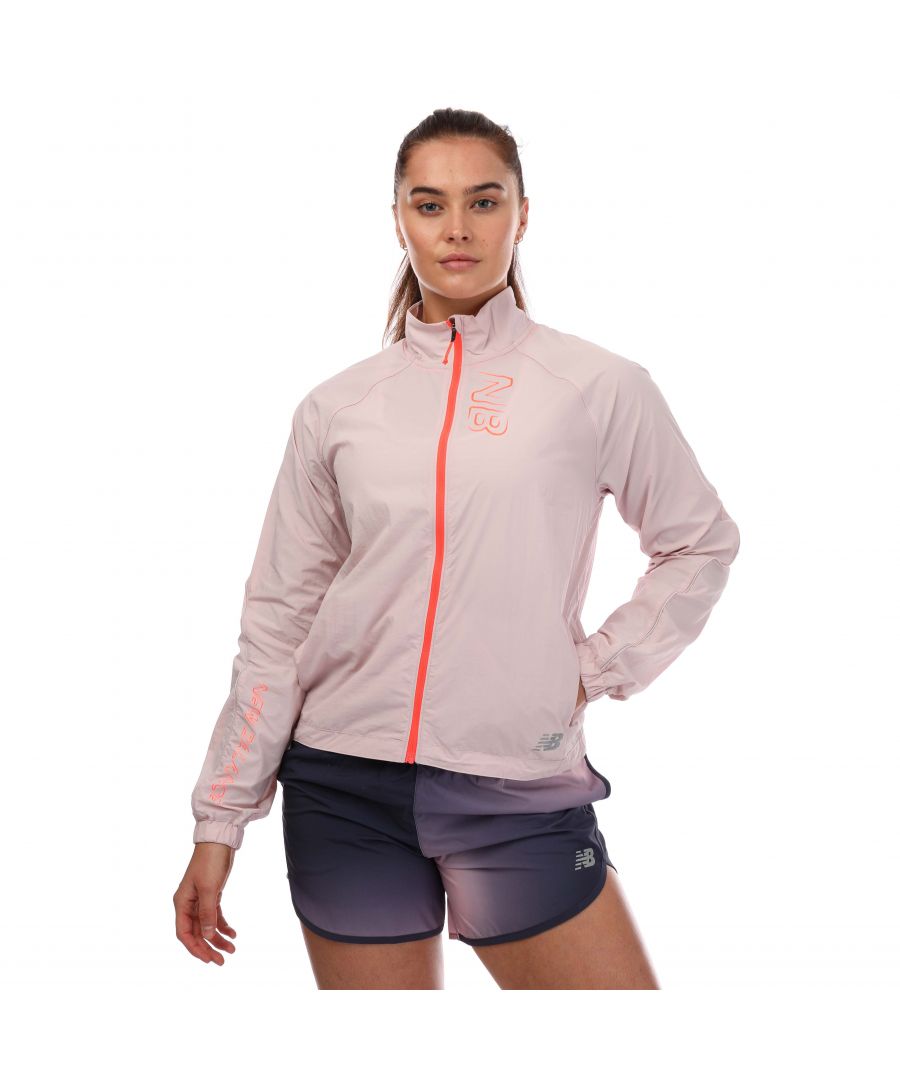 New Balance Impact Run licht, opvouwbaar jack met print voor dames, roze