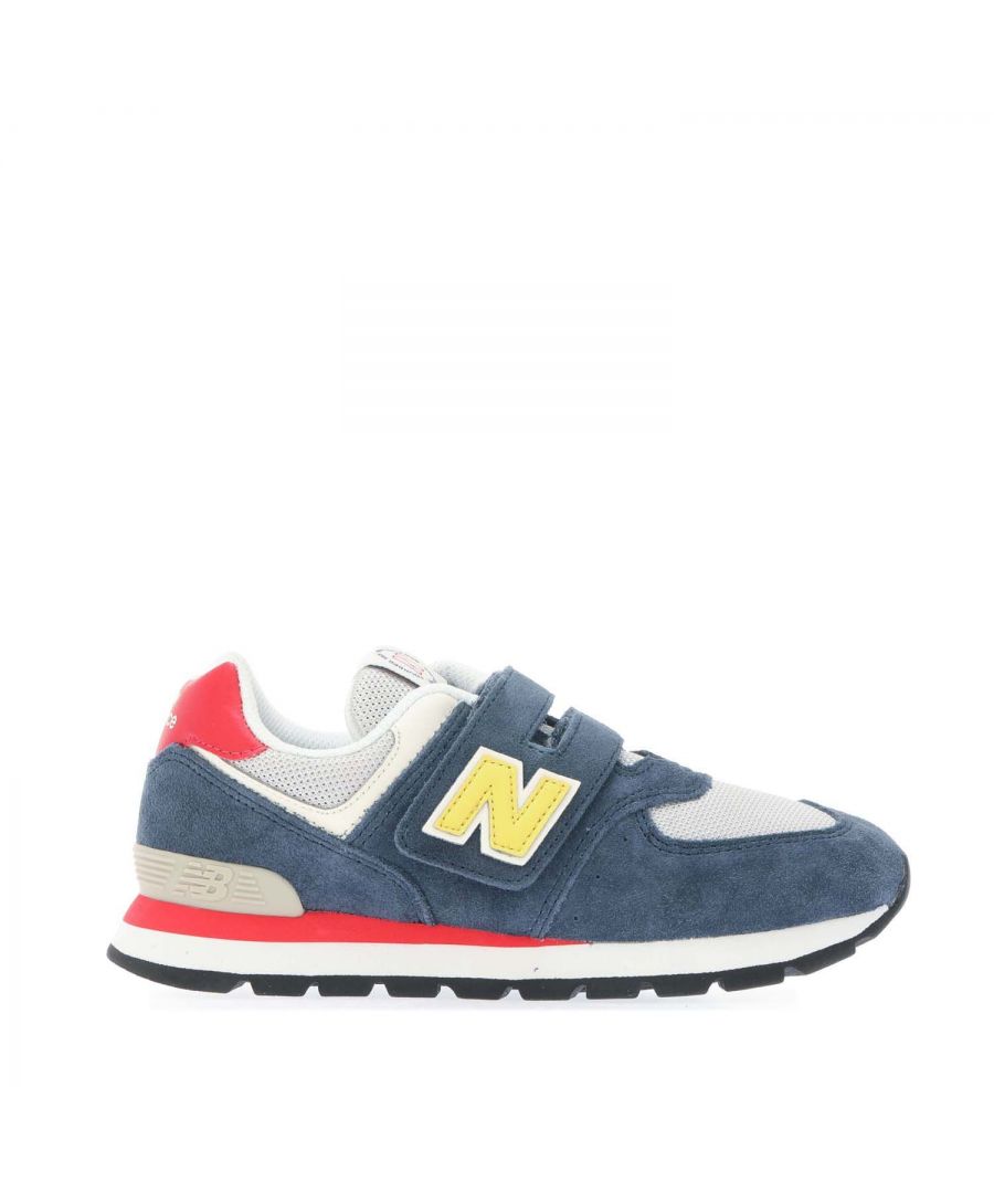 Boys New Balance 574 Hook and Loop Trainers in indigo.- Hook-and-loop closure.- Lightweight EVA foam cushioning in the midsole and heel increases comfort. - Durable rubber outsole.- Ref.: PV574DR2