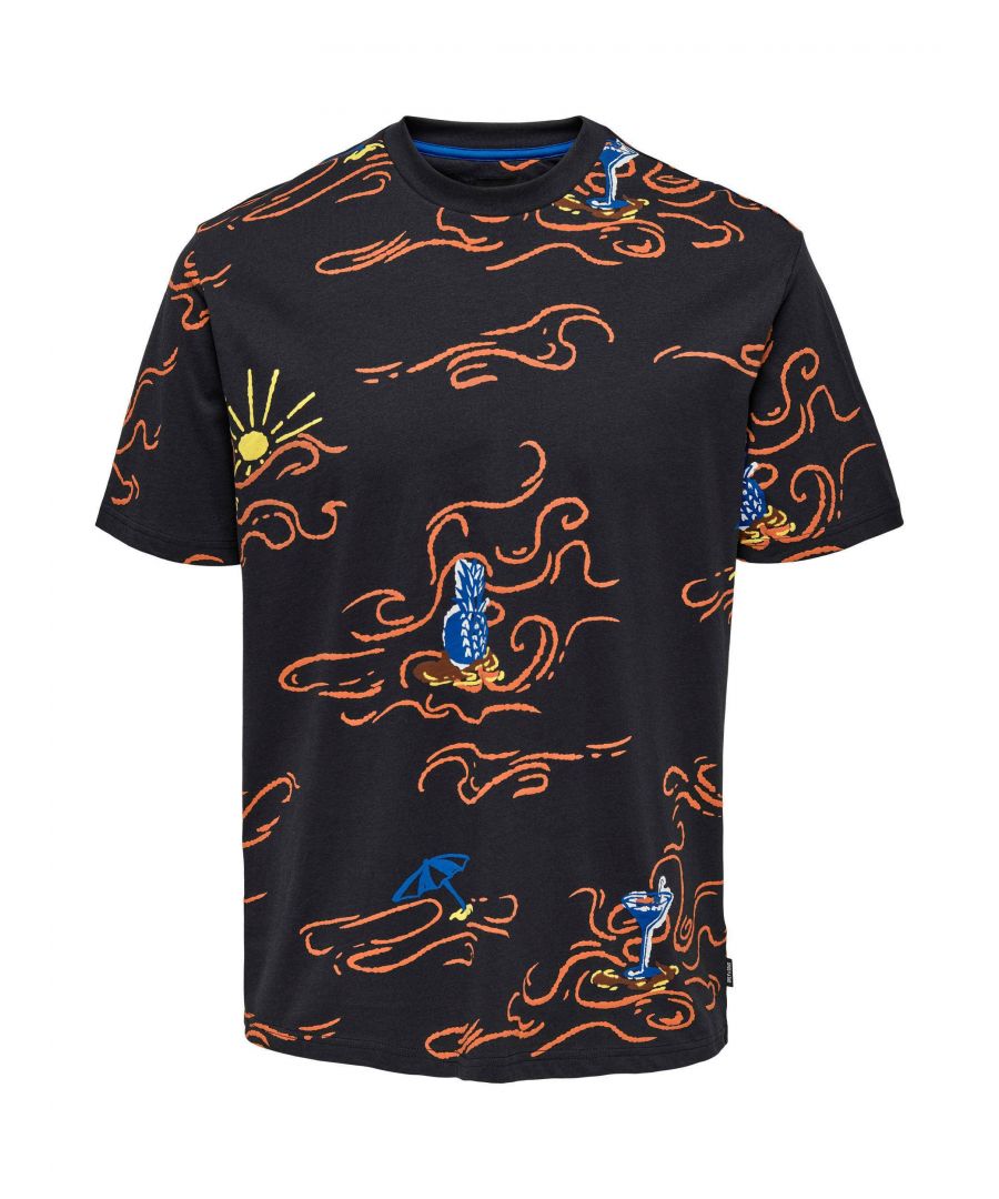 ONLY & SONS regular fit T-shirt ONSPEDRO met all over print dark navy