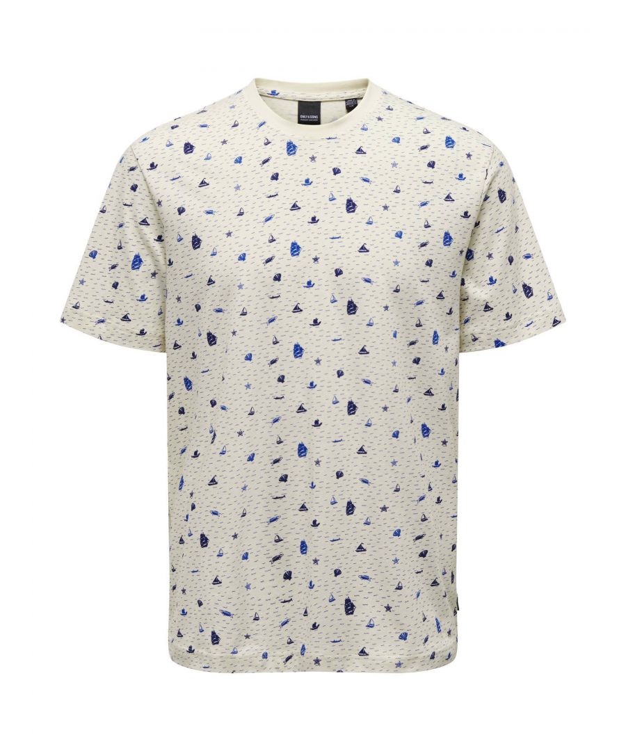ONLY & SONS regular fit T-shirt ONSLEVI met all over print antique white