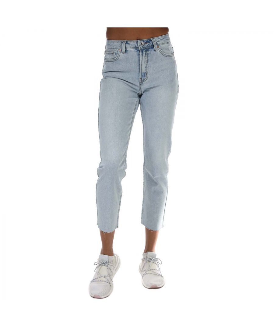 Only Emily rechte gescheurde jeans met hoge taille voor dames, lichtblauw
