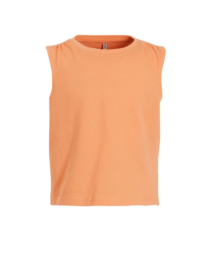Dit T-shirt voor meisjes van KIDS ONLY GIRL is gemaakt van katoen. Het mouwloze model heeft een ronde hals.details van dit T-shirt:stijlnaam: KOGOLIVIE