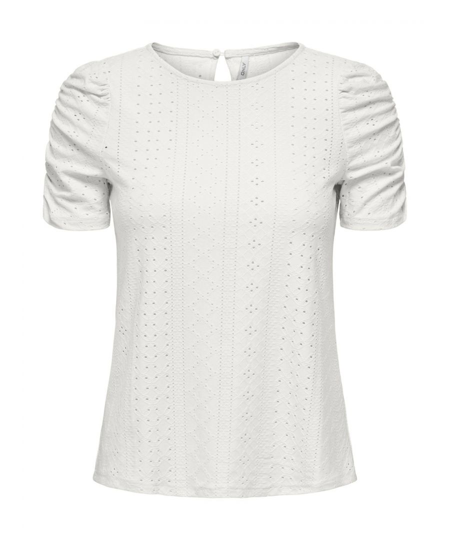 Deze top voor dames van ONLY is gemaakt van een polyestermix. Het model heeft een ronde hals en korte mouwen. De top heeft een knoopsluiting.details van deze top:stijlnaam: ONLSANDRAbroderie detailspofmouwen