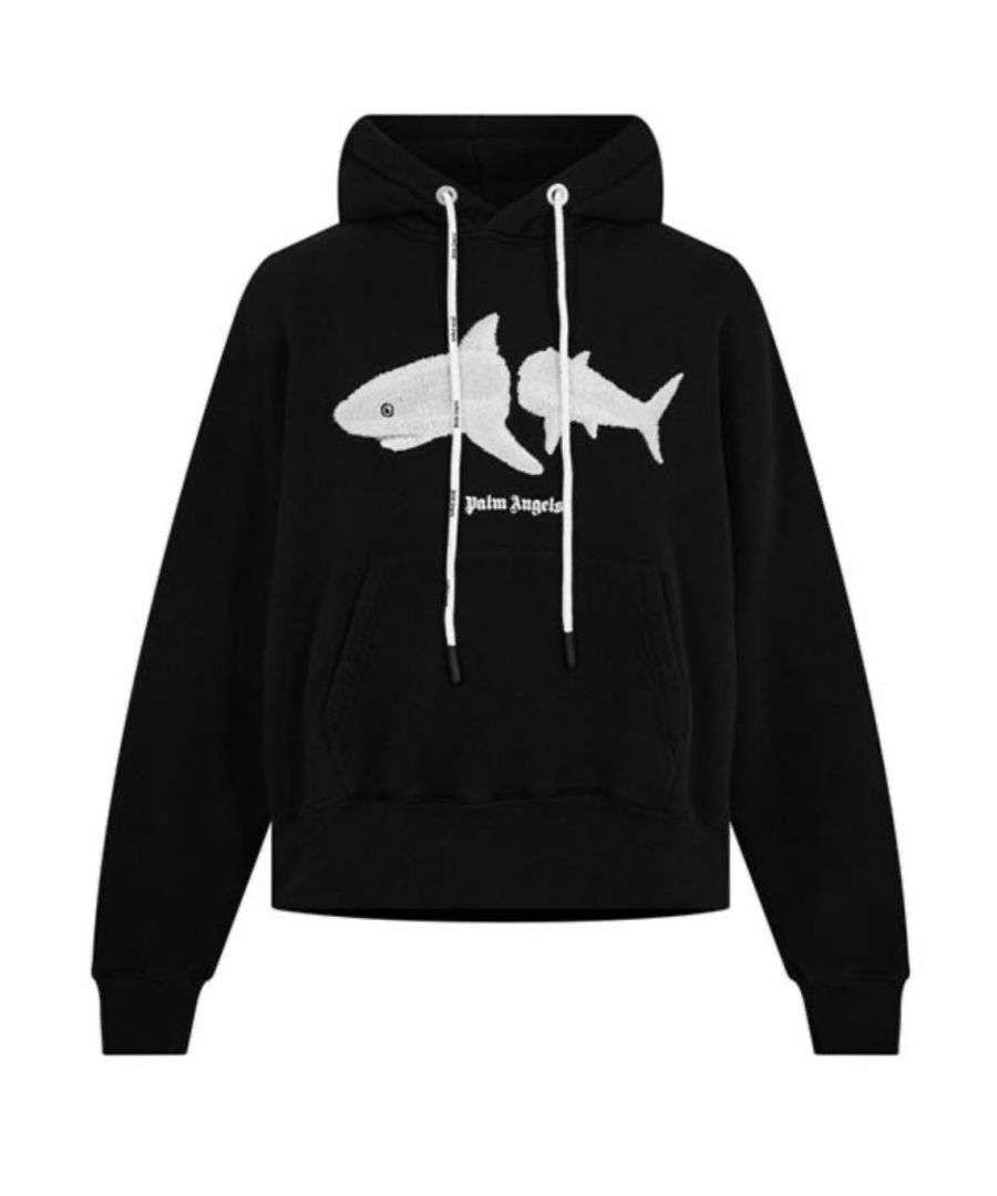 Palm Angels Kill the Shark Logo Black Hoodie. Look like the ultimate Palm Angels enthusiast With this Black Hoodie. Featuring regular fit and true to size fit, this black hoodie is designed with Palm Tree Logo and large branding, and embroidered logo to complete the look. Show off your style in this amazing piece!. Regular Fit, Fits True To Size, Palm Angels Black Hoodie. Palm Tree Logo and Large Branding, Embroidered Logo. 100% Cotton, Made In Italy, Long Sleeve, Elasticated Waist and Sleeve Endings. Style Code: PMBB058S23FLE005 1001