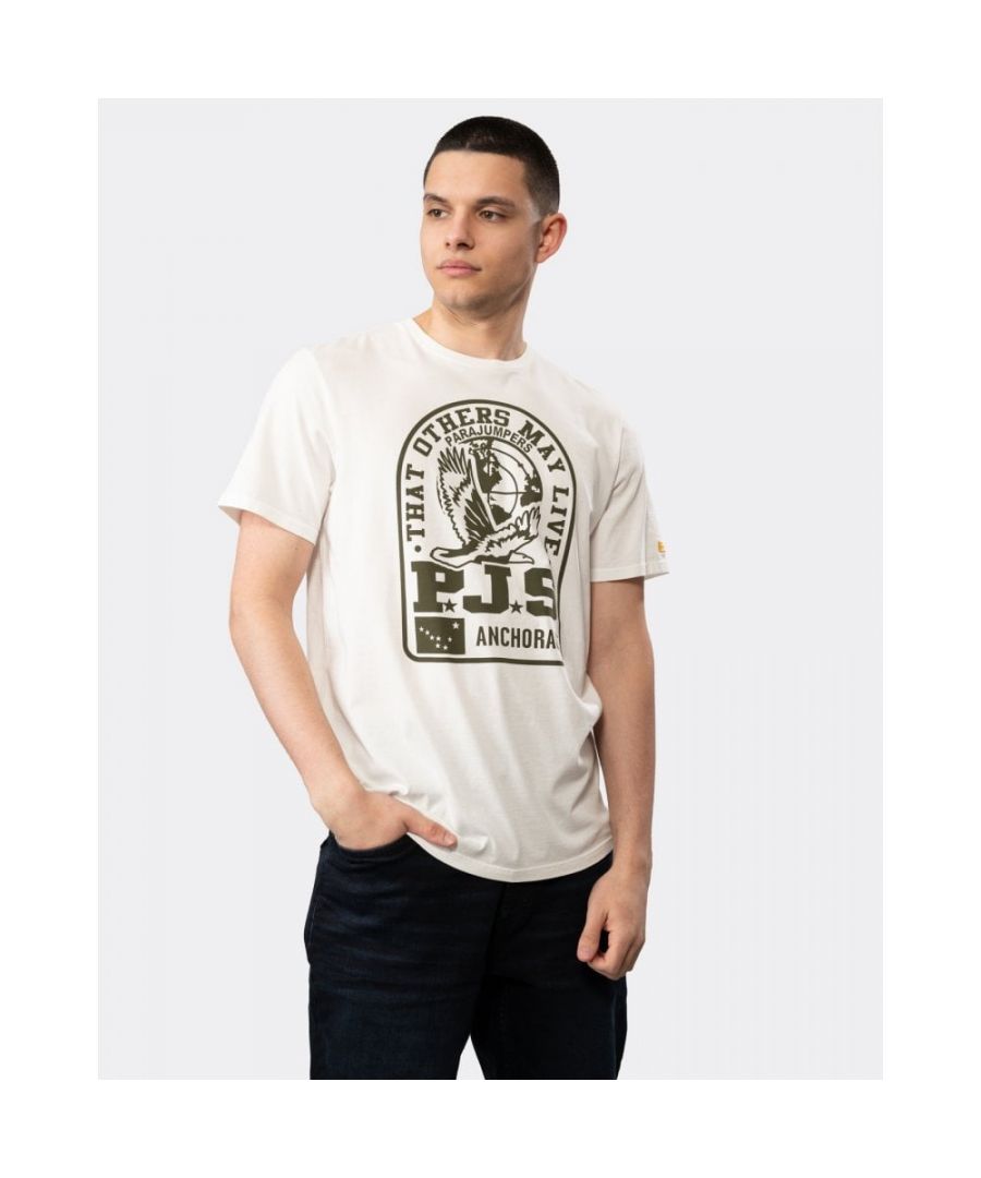 Parajumpers Nate Tee Printed Logo White T-Shirt. Parajumpers White tee is the perfect summer wear. A classic white tee with a pocket on the left chest, this tee is stylish and comfortable. Show your fashion commitment and be the envy of your friends!. Parajumpers white Tee, 100% Cotton. Patch Logo On Chest Left Sleeve, Large Logo On Chest. 100% Cotton. Style : GT02-505 Nate Tee