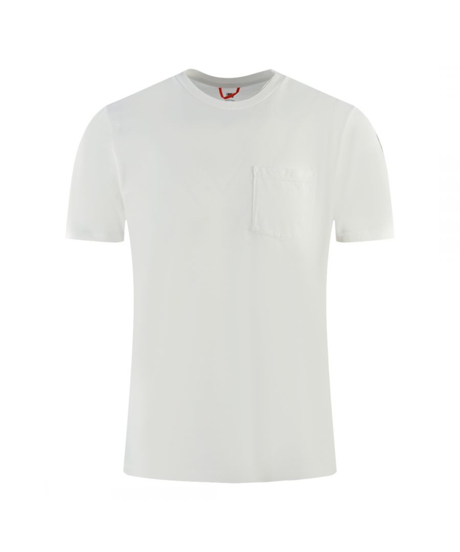 Parajumpers Basic Tee Chest Pocket White T-Shirt. Parajumpers White tee is the perfect summer wear. A classic white tee with a pocket on the left chest, this tee is stylish and comfortable. Show your fashion commitment and be the envy of your friends!. Parajumpers white Tee, 100% Cotton. Patch Logo On ChestLeft Sleeve. 100% Cotton. Style : BT01-505 Basic Tee