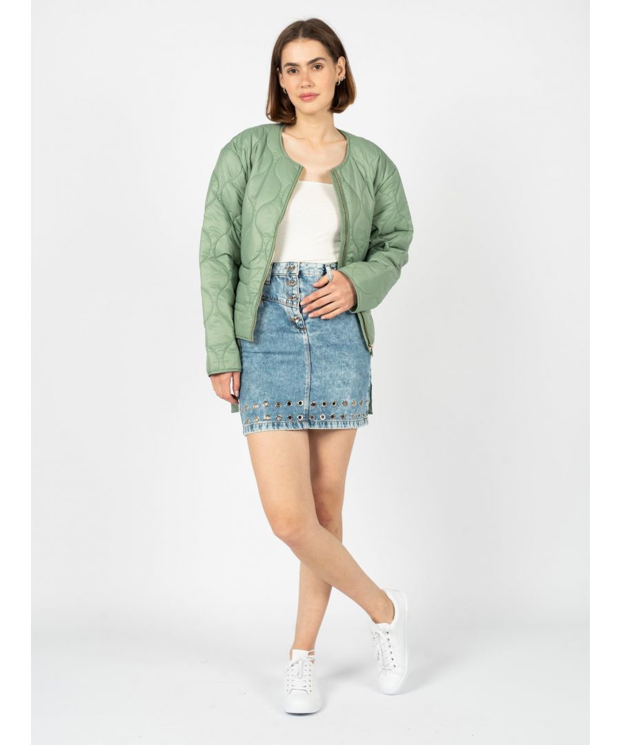 Aansluitende pasvorm Mini lengte, tot halverwege het dijbeen Met een vervaagd effect Voorzijde sluitend met knopen Twee zakken aan de zijkanten Achterzakken versierd met borduurwerk Afgewerkt met gouden stiksels Onderkant versierd met glinsterende klinknagels Gemaakt van hoogwaardige stof