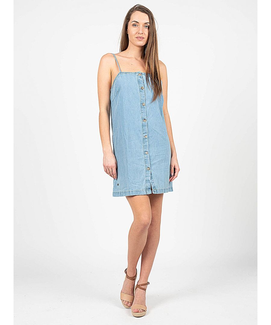 Eenvoudige stijl Mini-lengte, tot halverwege het dijbeen Op dunne bandjes Gesloten met gesigneerde knopen Stiksels langs de rug Merkdetail aan de rechterkant Gemaakt van aangenaam aanvoelende denim