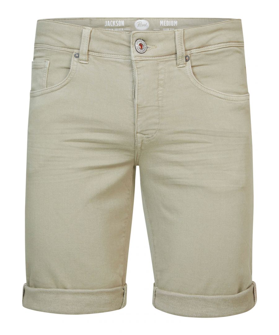 Kleurrijke Jackson short met 5-pocketmodel en een slim fit. Gemaakt van 77% katoen, 21% polyester en 2% elastaan, wat zorgt voor een comfortabele, stretchy pasvorm. Met riemlussen, knoopsluiting en ritsgulp. Verkrijgbaar in meerdere kleuren. Jackson short Slim fit Knoopsluiting en ritsgulp 77% katoen, 21% polyester, 2% elastaan Het model is 185 cm en draagt maat L
