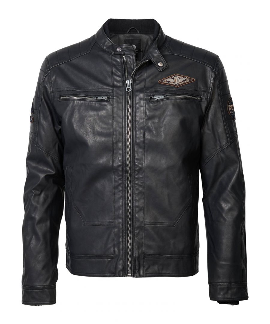 Stoer bikerjack met ritssluiting, steekzakken met drukknopen, borstzak met ritssluiting en een binnenzak. De jas heeft een Petrol-logo-embleem op de mouw en is afgewerkt met ribgebreide boorden. De binnevoering van de jas is gemaakt van 100% gerecycled polyester.BikerjackRitssluitingSteekzakken met drukknopen100% polyurethaanDe binnenvoering is gemaakt van 100% gerecycled polyesterHet model is 189 cm en draagt maat L