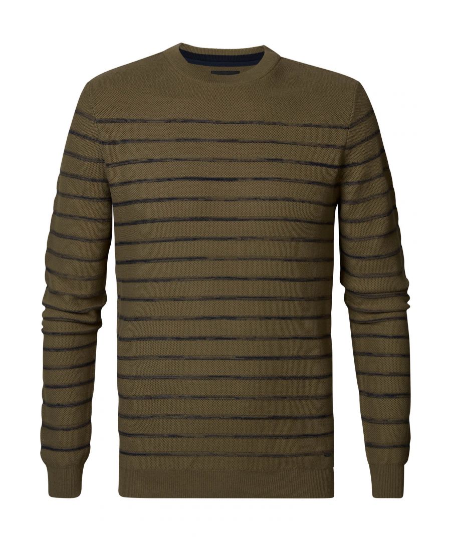 Gebreide trui met ronde hals en strepen motief. Deze gebreide trui heeft ribgebreide afwerkingen en is in meerdere kleuren verkrijgbaar. Twijfel je tussen twee maten? Kies dan de grootste maat.Gebreide truiRonde halsStrepen motief100% katoenHet model is 189 cm en draagt maat L