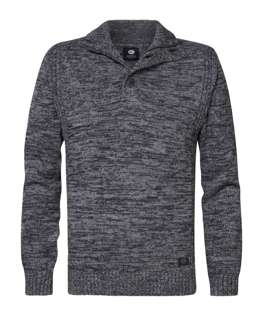 Gemêleerde trui met klassieke opstaande kraag. Deze trui heeft een knoopsluiting tot op de borst en een ribgebreide afwerking. Twijfel je tussen twee maten? Kies dan de grootste maat.Gemêleerd designOpstaande kraagKnoopsluiting tot op de borstRibgebreide afwerking100% katoenHet model is 185 cm en draagt maat L