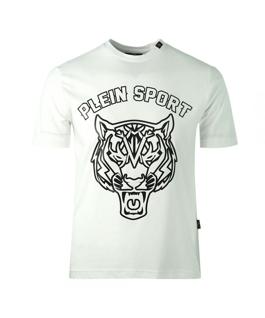 Philipp Plein Sport Tiger Head Logo wit T-shirt. Philipp Plein sport wit T-shirt. 100% katoen. Plein-logo. Badges met Plein-merk. Stijlcode: TIPS127 01