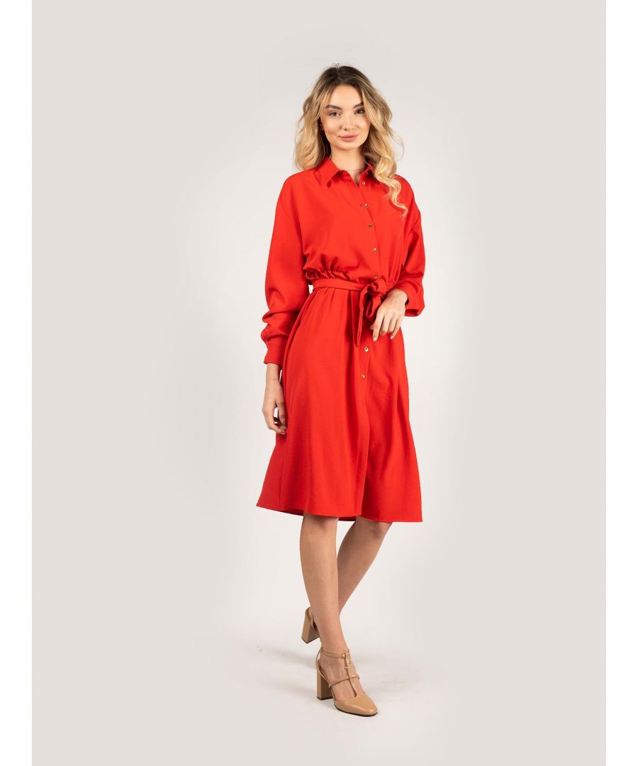 Eenvoudige stijl Midi lengte, halve kuitlengte Knoopsluiting Met kraag Met lange mouwen Manchetten met twee knopen Plooien in de taille Gemaakt van hoogwaardige stof met stretch
