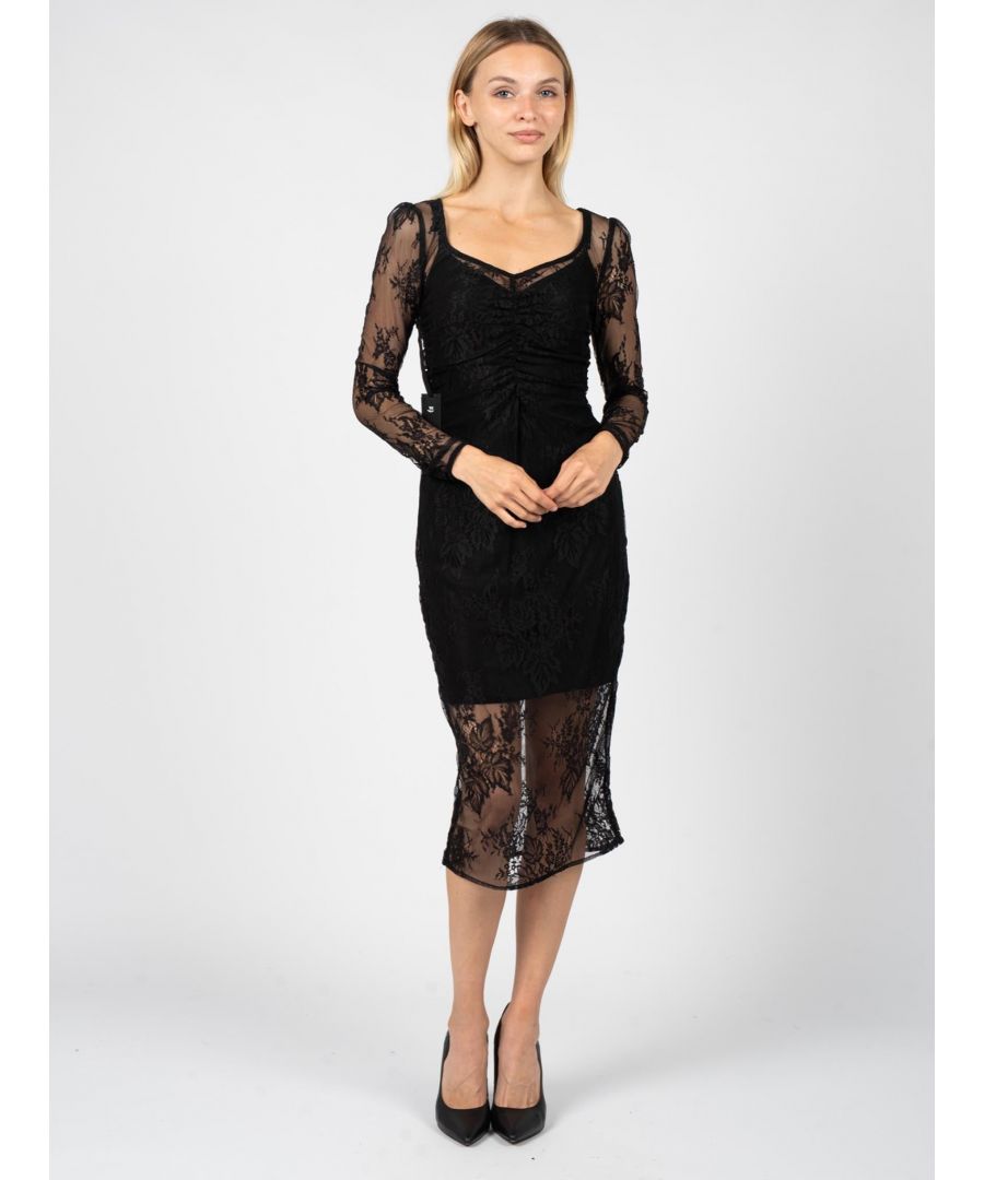 Aansluitende snit Kanten Midilengte, tot aan de knieën Met bijgevoegde petticoat V-hals Met lange mouwen Gemaakt van hoogwaardige stof Geproduceerd in Italië
