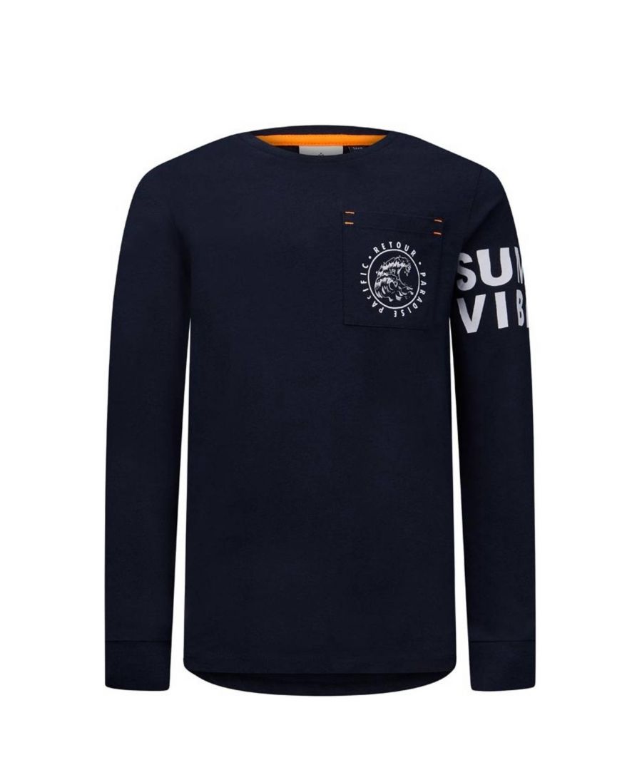 Retour Denim longsleeve Olaf met tekst donkerblauw
