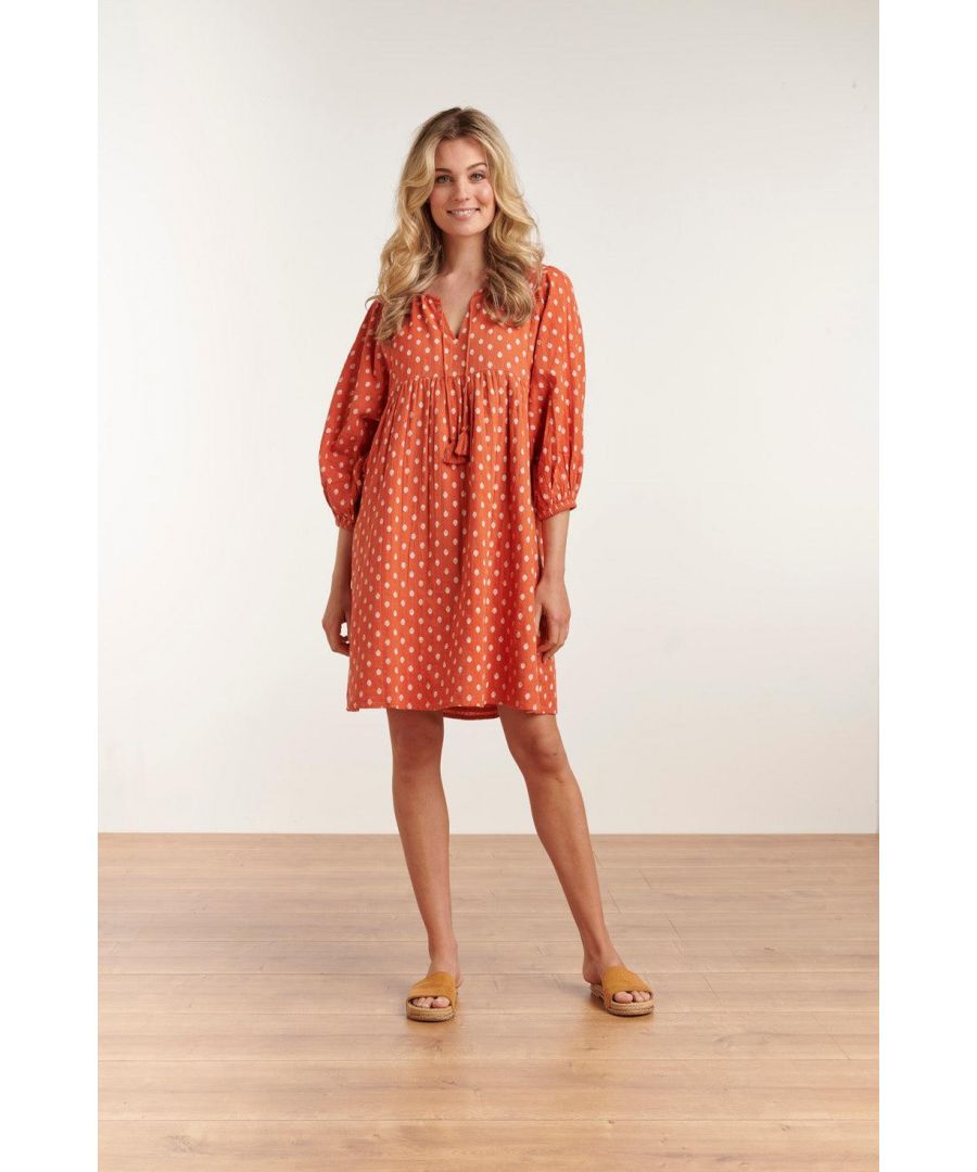 This Casual Three-quarter Sleeve features a colorful geometric print, with an airy open back and a v-neckline. This is a casual, yet fashionable, summer dress that you can wear to work or a night out. It is a lightweight, v-neck dress with an elasticized band around the waist and a flouncy skirt. This dress is perfect for the summer months because it is lightweight and can be paired with sandals or flats.The Summer V-Neck Casual Mini Dress is a soft and stylish dress that is perfect for any occasion. The dress is versatile and comfortable and is designed with high-quality fabric. The V-neck and three-quarter sleeves allow for a flattering fit that compliments any figure. The stretchy fabric allows for ease of movement and a comfortable fit. The length of the dress is perfect for work or play and the elastic waistband ensures a flattering fit. Features: Suit for autumn, winter, and spring. Made from high-quality fabric, lightweight soft, and comfortable. The Print design makes it more fashionable and attractive to wear. Specifications : Style: Dress Print: Abstract Pasvorm: Losvallend Lengte: Boven de knie Model: 179 cm lang en draagt maat S/36 Country of Origin: Made in India color: coral-white Lining: 100% rayon Fabric composition: SHELL: 100% COTTON LINING: 100% COTTON