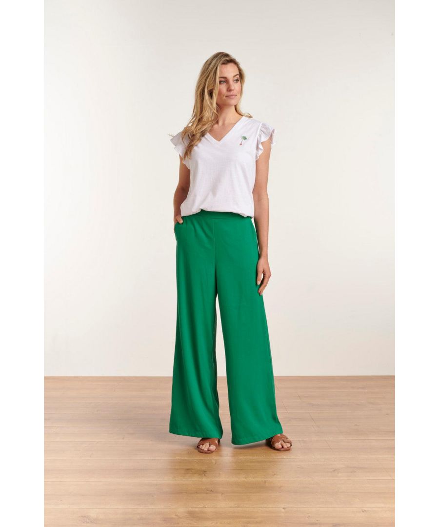 Voeg een vleugje tropische flair toe aan je garderobe met ons witte T-shirt met geborduurde palmboom. Het T-shirt heeft ruches mouwen die zorgen voor een speelse en vrouwelijke uitstraling. De palmboom is subtiel geborduurd en geeft het T-shirt een zomerse en relaxte vibe. Gemaakt van comfortabele en ademende katoenen stof, dit T-shirt is perfect voor warmere dagen. Draag het op een spijkerbroek of short voor een casual look of combineer het met een rok. Kenmerken: Geborduurde palmboom geeft een zomerse touch aan het T-shirt Ruches mouwen voegen een speelse en vrouwelijke uitstraling toe Comfortabele en ademende katoenen stof Specificaties : Style: Top Print: Palmboom Pasvorm: Losvallend Model: 180 cm lang en draagt maat S/36 Country of Origin: Made in Thailand color: white-green Lining: No lining Fabric composition: 100% Cotton