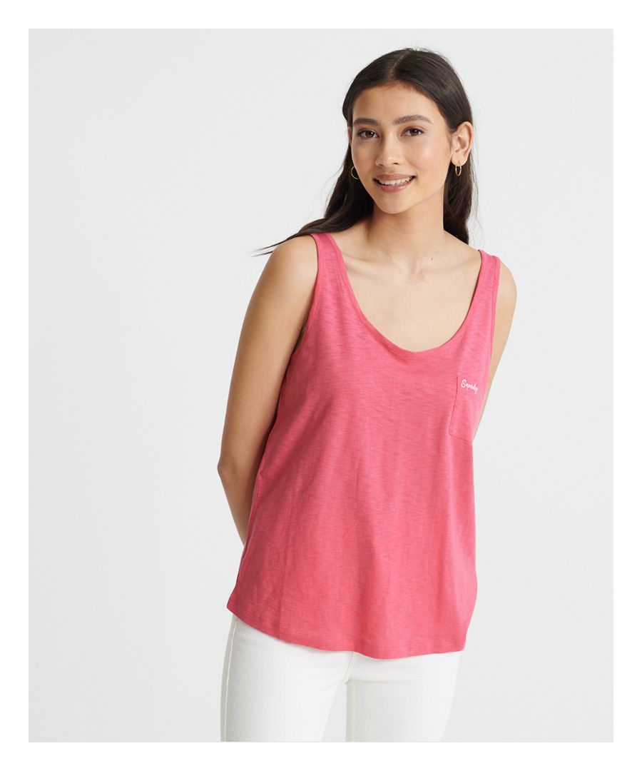 Superdry Essential-tanktop van biologisch katoen voor dames uit de Orange Label-collectie. Je hebt nooit te veel effen topjes, maar waarom combineer je ze niet een beetje met deze tanktop van een biologische katoenmix. Afgewerkt met een borstzak met geborduurd Superdry-logo en een Superdry-logolabel op de zoom.Gemaakt van biologisch katoen - Gemaakt van katoen dat wordt geteeld met biologische landbouwmethoden. Dit minimaliseert het waterverbruik, elimineert pesticiden en zorgt voor een goede gezondheid van de bodem en een goed levensonderhoud voor de boeren.