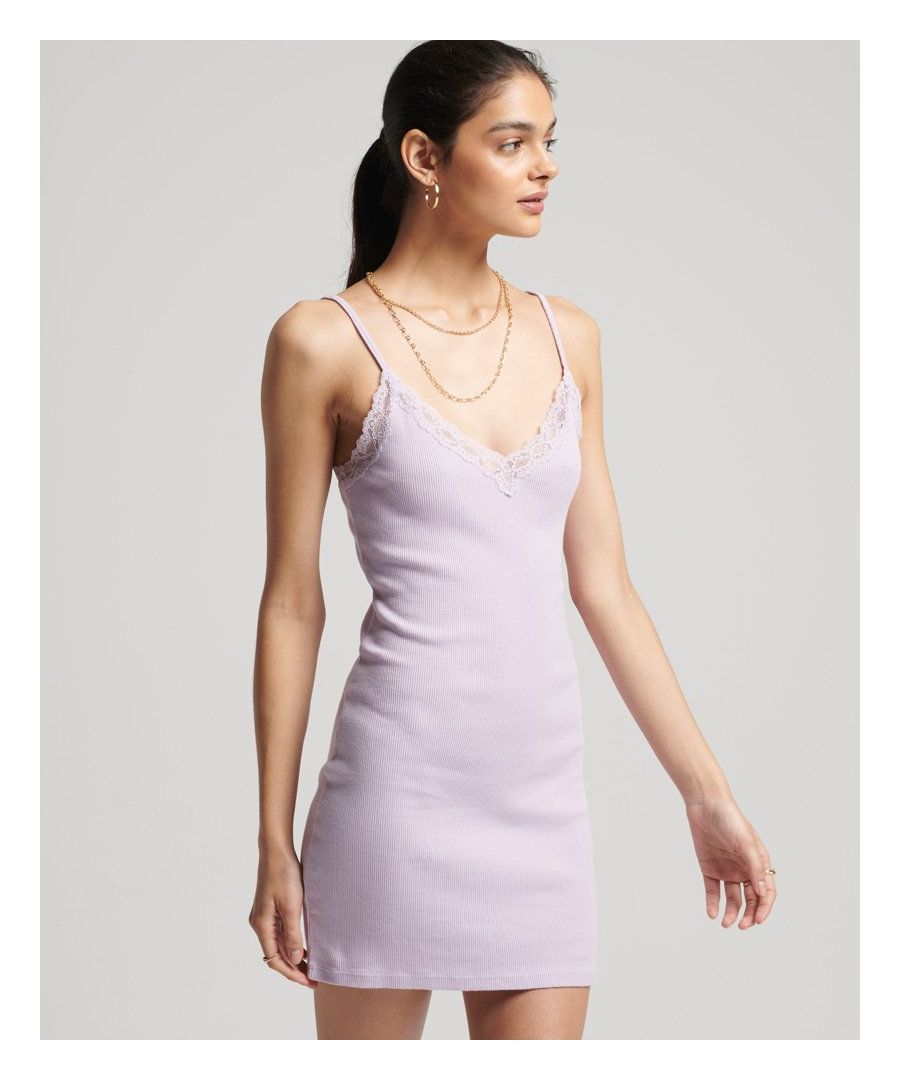 Kies voor een subtiel vleugje elegantie en comfort met onze chique vintage cami mini-jurk met kanten details. Combineer dit kledingstuk met een blazer en hoge hakken voor de perfecte avondlook.Slimfit – zit nauwer om het lichaam voor een strakkere lookVerstelbare spaghettibandjesV-halsKanten detailsKenmerkend logolabel