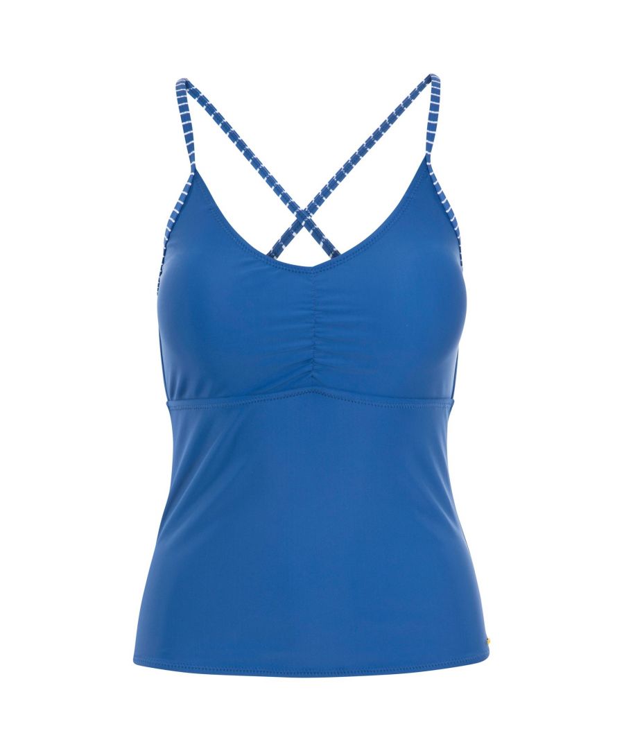 80% Polyamide, 20% Elastaan. Verstelbaar kruis over de riemen. Contrasterende versieringen. Afneembare borstkussentjes. Borstomvang dames (ca.): XS/8 - 32in/81cm, S/10 - 34in/86cm, M/12 - 36in/91.4cm, L/14 - 38in/96.5cm, XL/16 - 40in/101.5cm, XXL/18 - 42in/106.5cm.