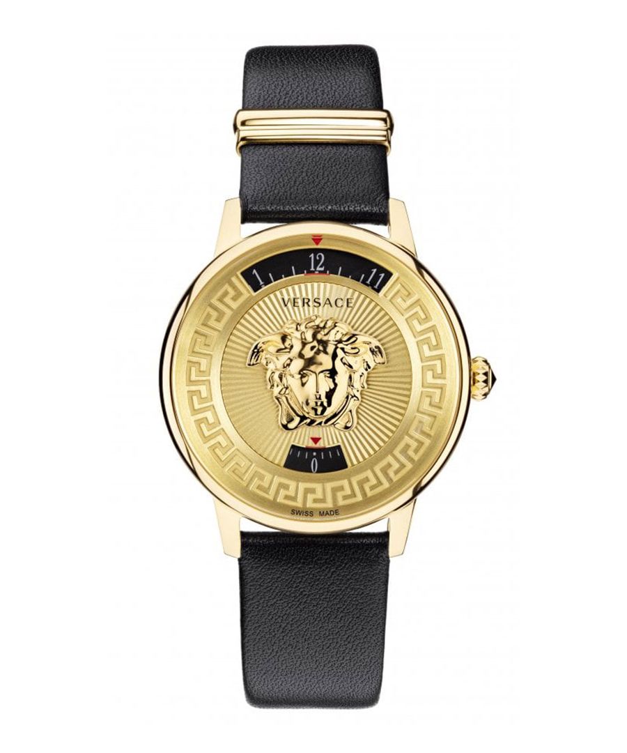 Dit Versace Dames horloge beschikt over een Quartz binnenwerk. De kast (38 mm mm) is vervaardigd uit RVS (Goudkleurig) en heeft een Saffierglas. De band is Zwart Leer. Dit horloge uit de Versace Medusa Icon reeks is een mooi en tijdloos geschenk. Verras jezelf of iemand anders met dit cadeau. Bovendien geniet u hierbij van 2 jaar garantie tegen alle fabricagefouten.