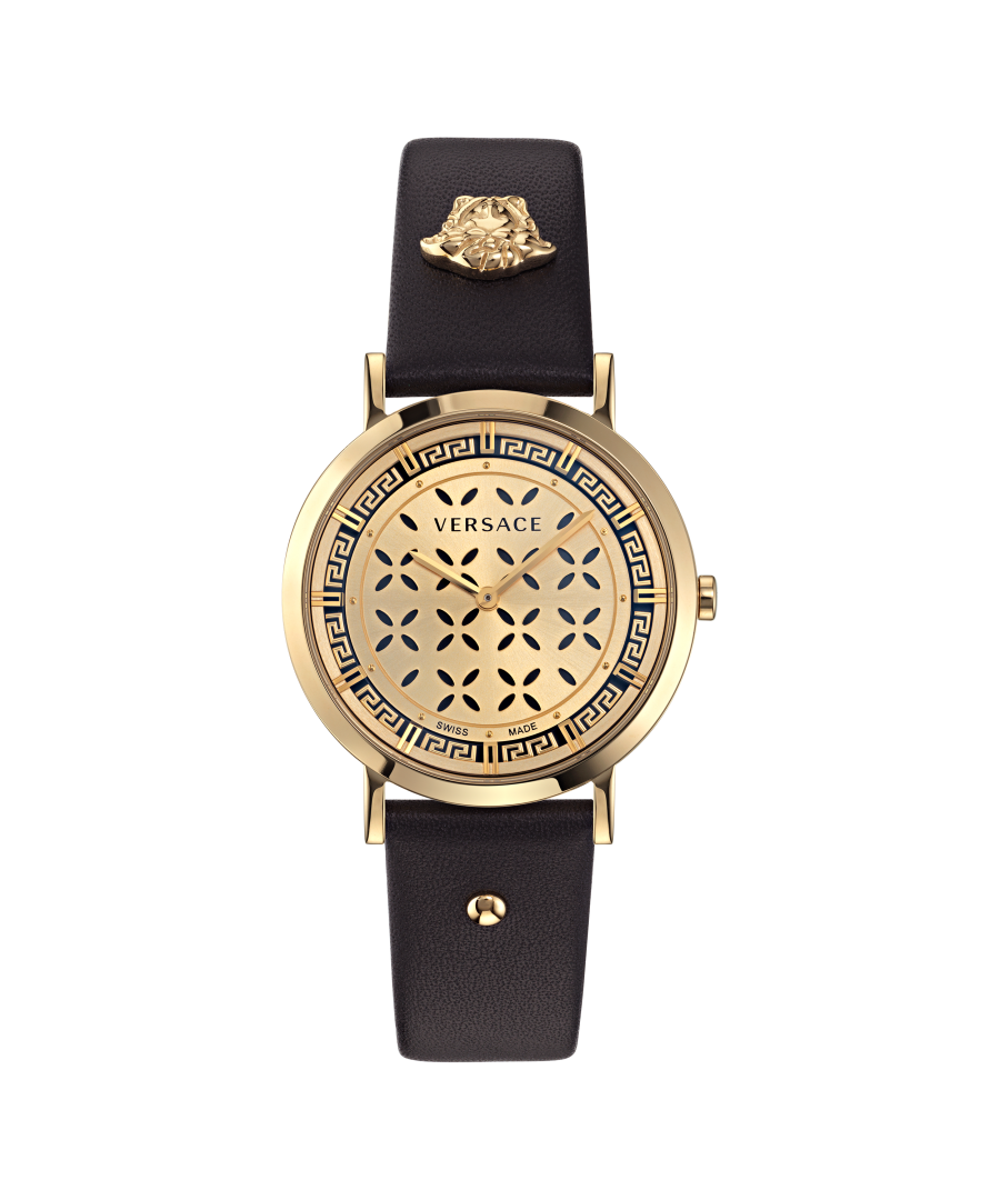 Dit Versace Dames horloge beschikt over een Quartz binnenwerk. De kast (36 mm mm) is vervaardigd uit RVS (Goudkleurig) en heeft een Saffierglas. De band is Zwart Leer. Dit horloge uit de Versace Versace New Generation reeks is een mooi en tijdloos geschenk. Verras jezelf of iemand anders met dit cadeau. Bovendien geniet u hierbij van 2 jaar garantie tegen alle fabricagefouten.