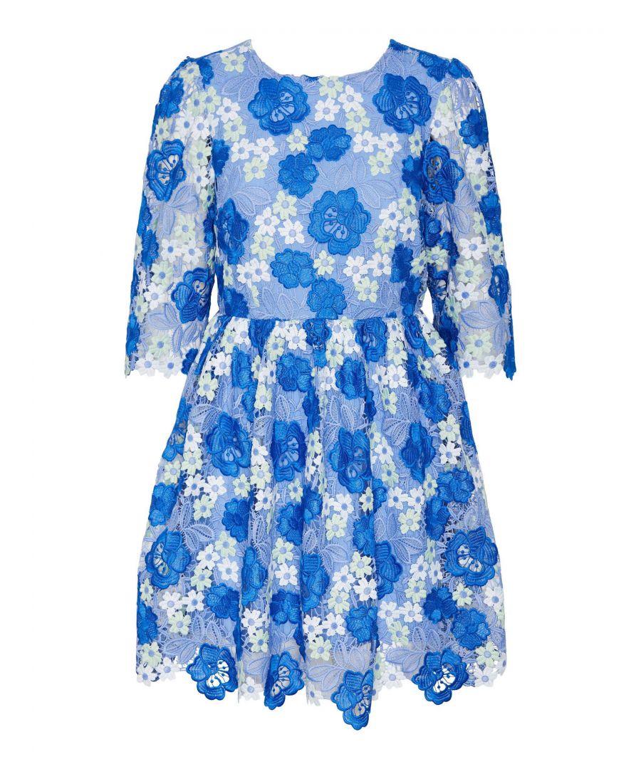 Y.A.S A-lijn jurk YASLACEDAZE met kant blauw